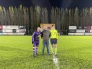 Op de foto herken je kapitein Jonas Vandermarliere, zaakvoerder Steven Gelfhof van 't Fruithuis en scheidsrechter Achiel Denhert.